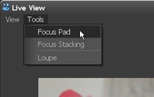 - In the Live View panel, select Tools > Focus Pad. (Focus Pad panel opens.)